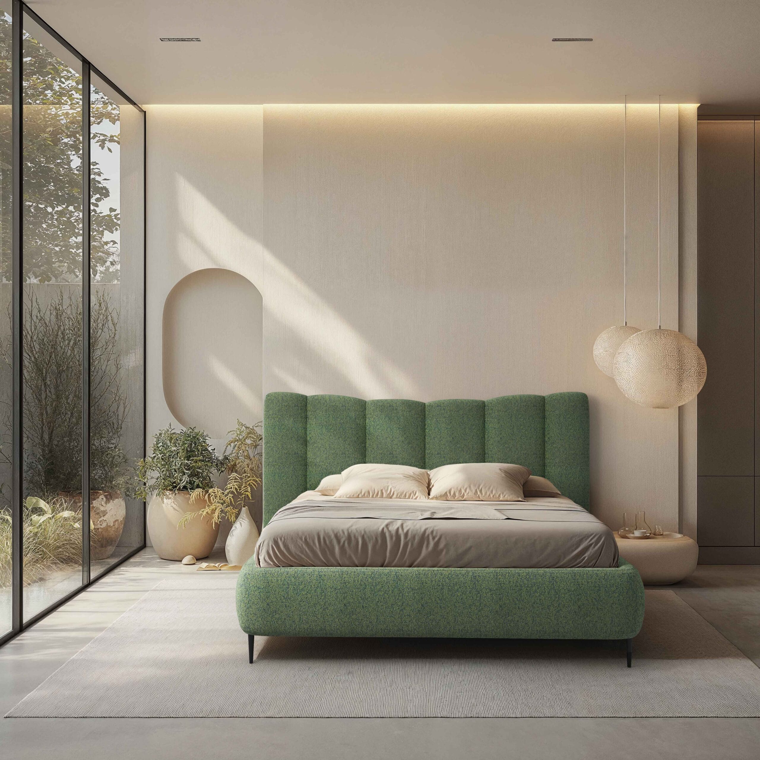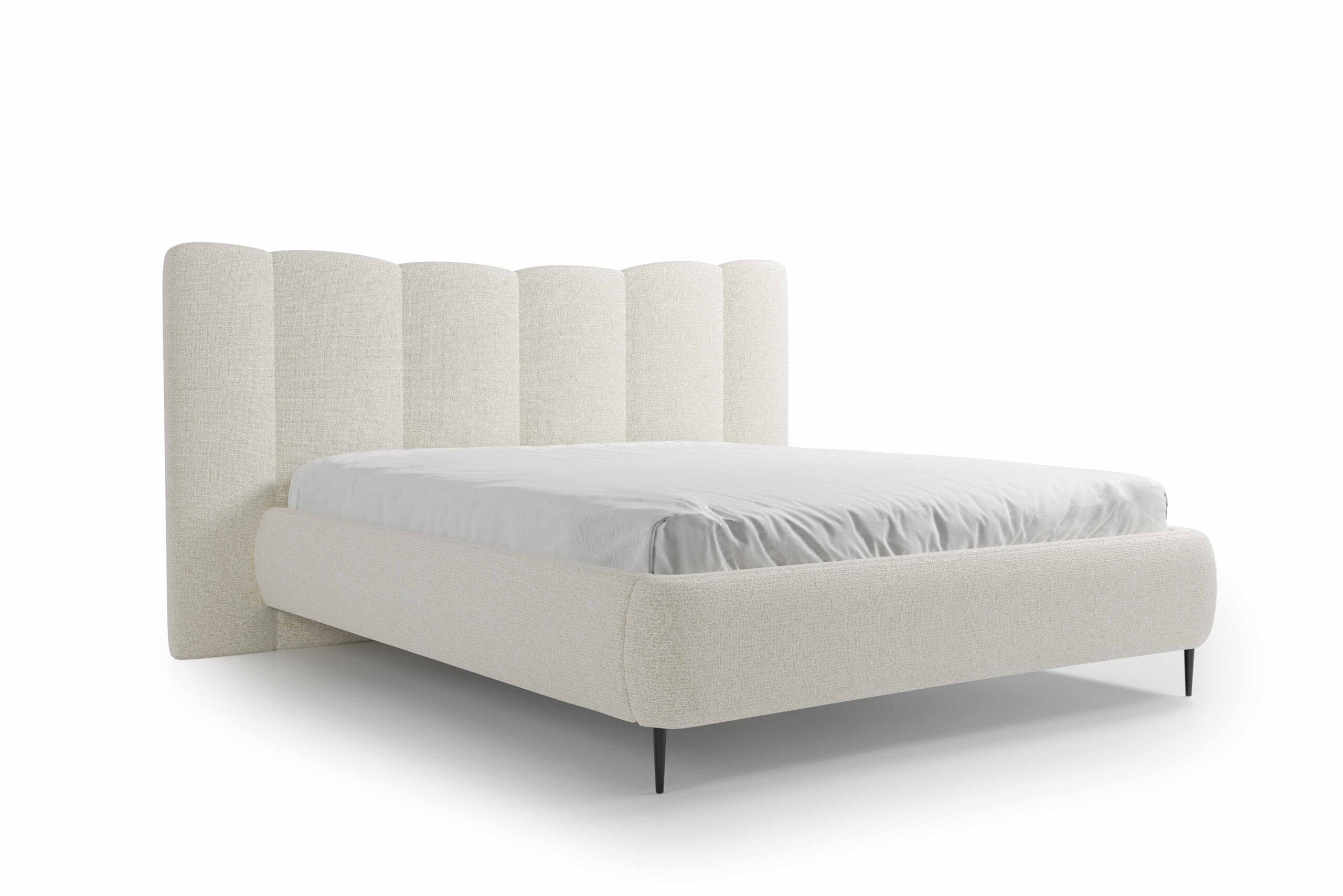 Łóżko Nook z jednej strony jest esencją nowoczesnego wzornictwa, łączącego niepowtarzalny styl z praktycznymi rozwiązaniami, a z drugiej hołdem dla klasycznej elegancji. Pionowe pasy na zagłówku oraz jego delikatnie uniesione końce, tworzące kształt muszli, sprawiają, że mebel przyciąga wzrok swoją wyjątkową formą, inspirowaną pięknem natury. Dwie subtelne lampki z dotykowym włącznikiem to interesujący, a zarazem praktyczny dodatek, który po zmroku tworzy w sypialni przytulną i relaksującą atmosferę, sprzyjającą odpoczynkowi. Istnieje również możliwość zamówienia łóżka bez lampek, co pozwala na dopasowanie mebla do indywidualnych potrzeb i preferencji.