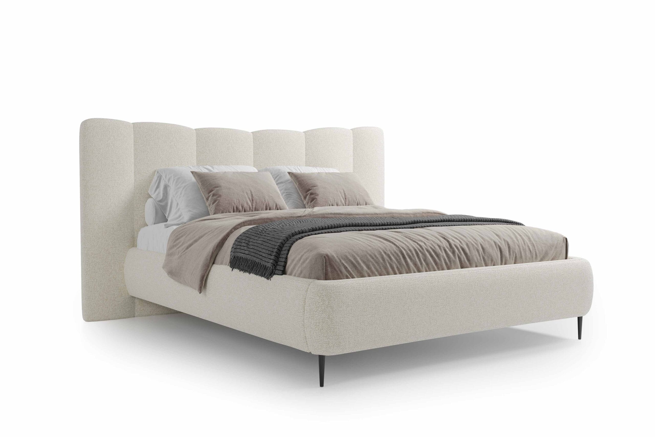 Piękną, minimalistyczną formę łóżka Nook podkreśla subtelna pleciona tkanina, która dodaje wyrafinowania i stanowi idealne dopełnienie eleganckiego charakteru mebla. Z kolei wysokie, smukłe nóżki nadają całości konstrukcji lekkości, dzięki czemu doskonale komponuje się ona z różnorodnymi aranżacjami, a Nook staje się ozdobą każdej sypialni. Oprócz tego łóżko może być wyposażone w pojemnik na pościel, który zapewnia dodatkowe miejsce do przechowywania — nieocenione zwłaszcza tam, gdzie liczy się każdy centymetr przestrzeni.