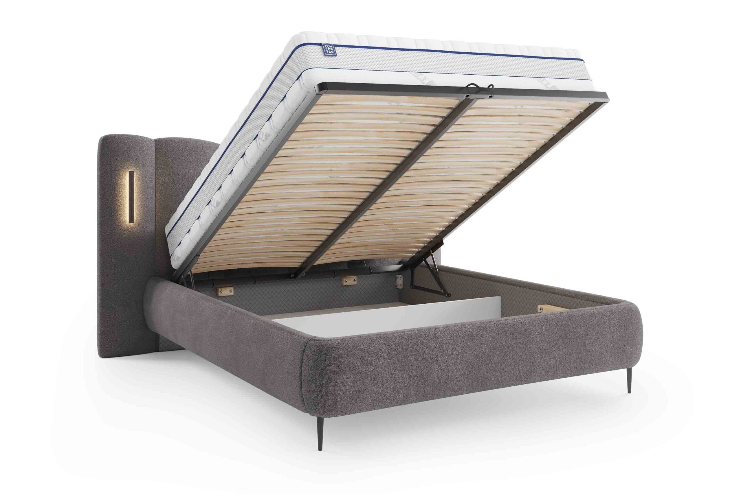 Łóżko do materacy w rozmiarach 140×200, 160×200, 180×200.